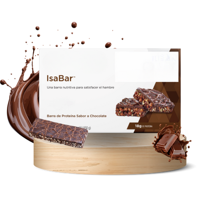 IsaBar es una barra de proteína diseñada para apoyar tus metas nutricionales y de peso. Contiene una combinación equilibrada de proteínas, grasas y carbohidratos, sin azúcares artificiales, ideal para un snack saciante y conveniente